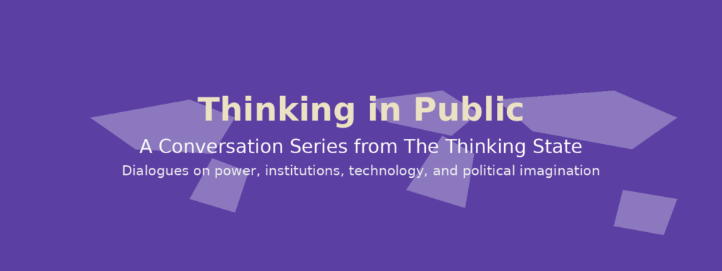 Each conversation expands on essays published in The Thinking State and invites public reflection on the structures shaping our daily life.